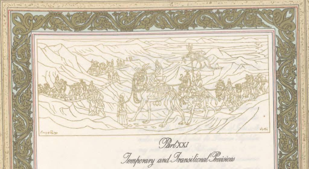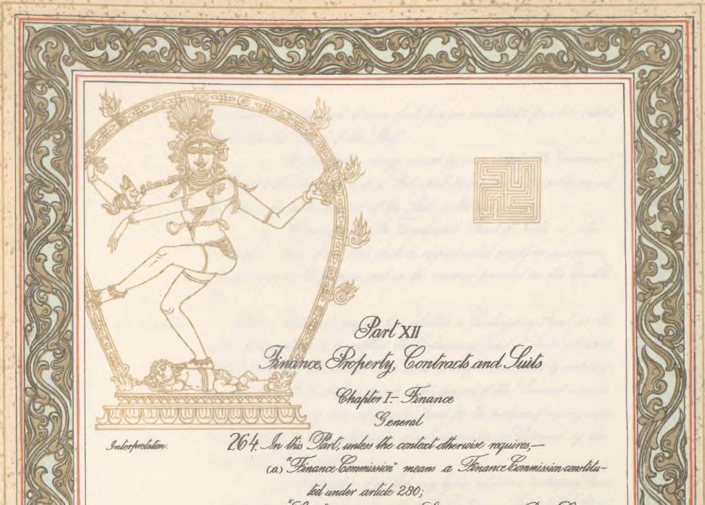 Constitution of India Paintings Related posts: Constitution of India in Bengali Constitution of India in Gujarati Constitution of India in Telugu Constitution of India in Konkani Constitution of India part xxi