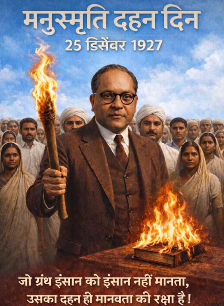 २५ डिसेंबर १९२७ हा दिवस भारतीय सामाजिक परिवर्तनाच्या इतिहासात अत्यंत महत्त्वाचा मानला जातो. या दिवशी महाड येथे डॉ. बाबासाहेब आंबेडकरांच्या नेतृत्वाखाली मनुस्मृतीचे दहन करण्यात आले. हा केवळ एका ग्रंथाचा निषेध नव्हता, तर मानवी प्रतिष्ठा, समानता आणि न्यायासाठी दिलेला निर्भीड संघर्ष होता.